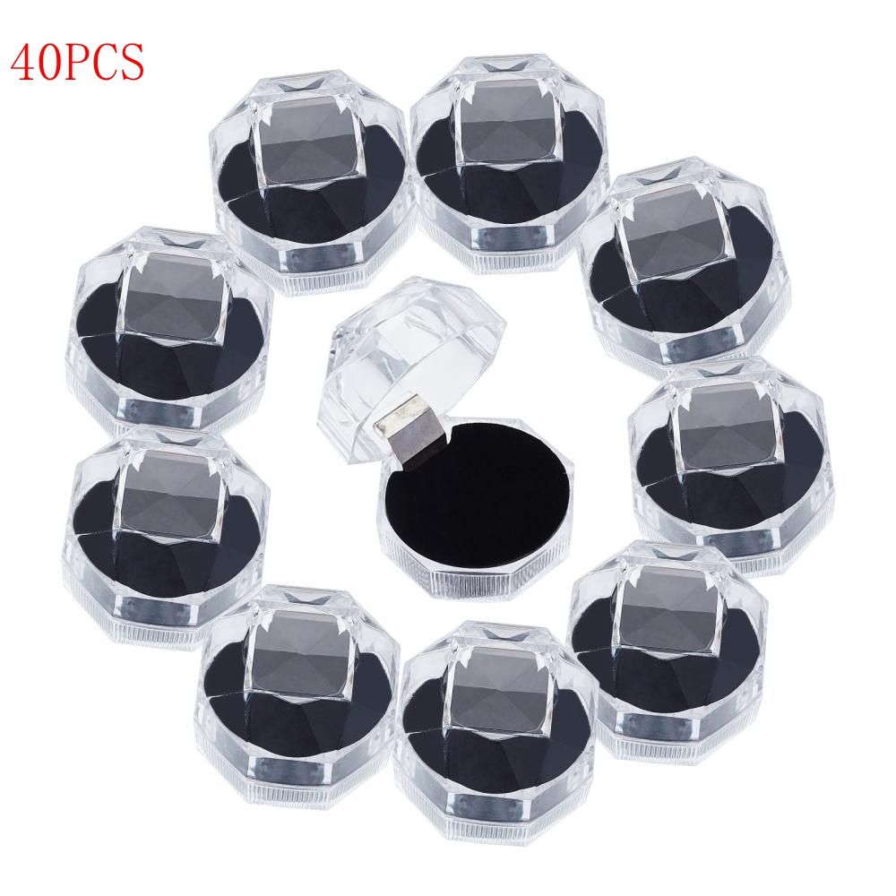 40pcs Black Clear Plastic Ring Boxes Crystal Earrings Jewelry Storage Boxes Display Organizer Case With Foam Insert