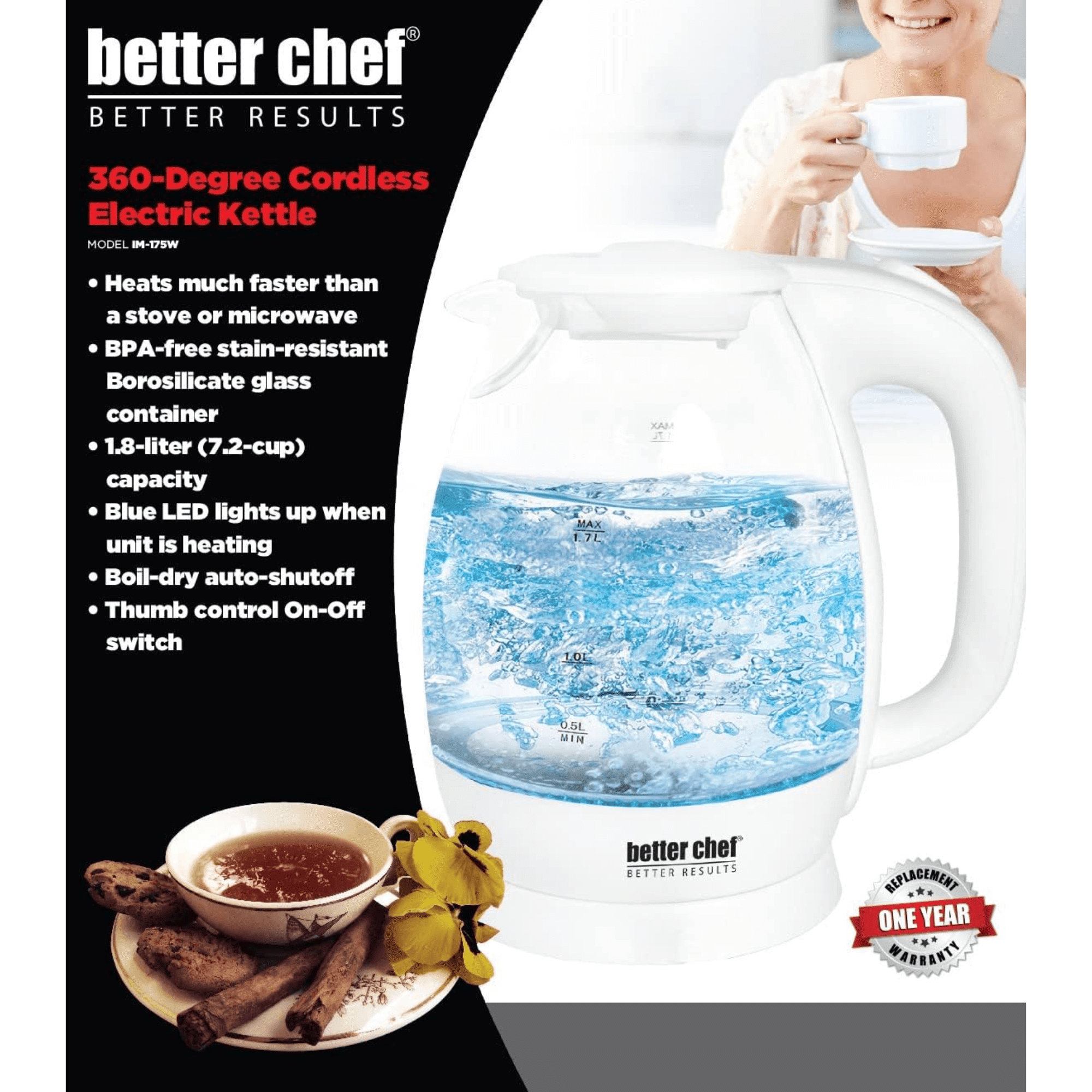 1.Better Chef 7-Cup Cordless Electric Borosilicate Glass Kettle with LED Light