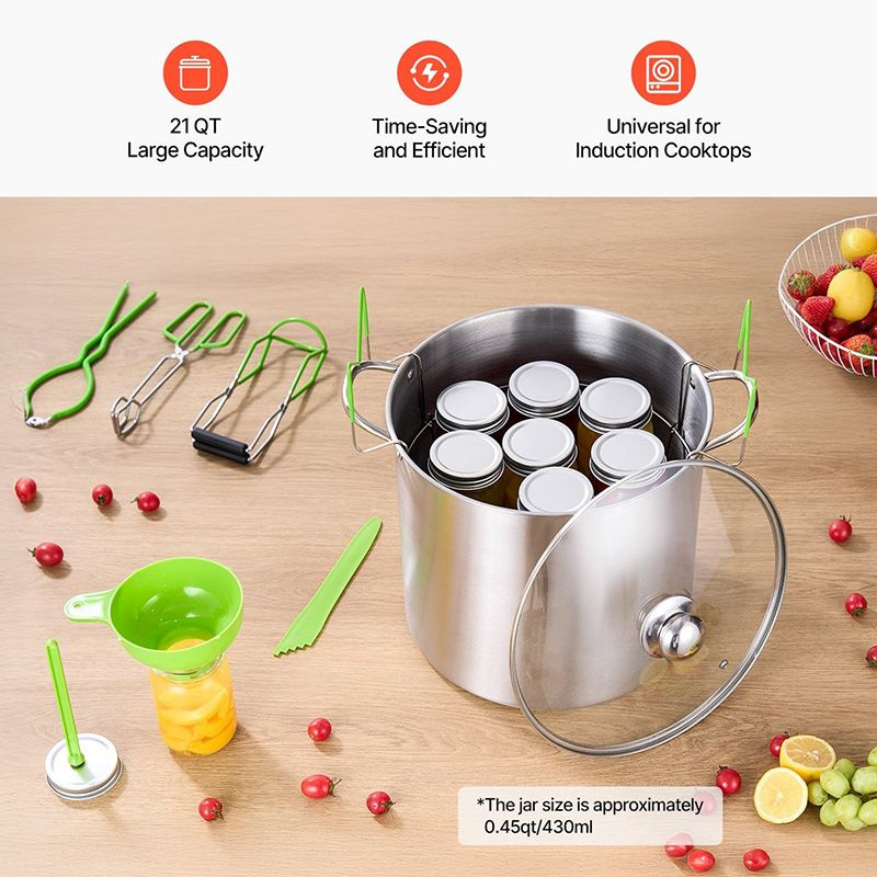 1.The canning pot with rack and lid is perfect for large-scale cooking, able to make 7 jars of canned goods.