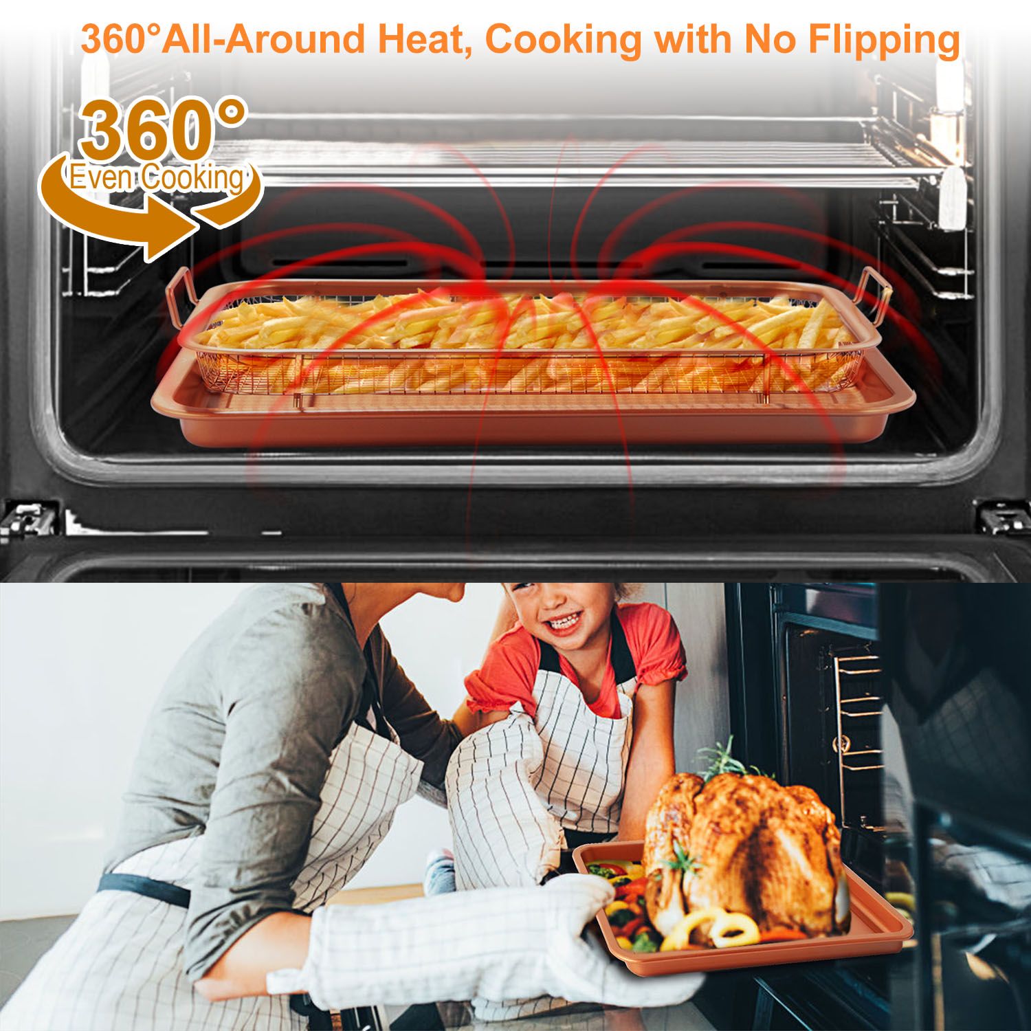 Crisper Tray Set Non Stick Cookie Sheet Tray Air Fry Pan Grill Basket Oven Dishwasher Safe Oil Free