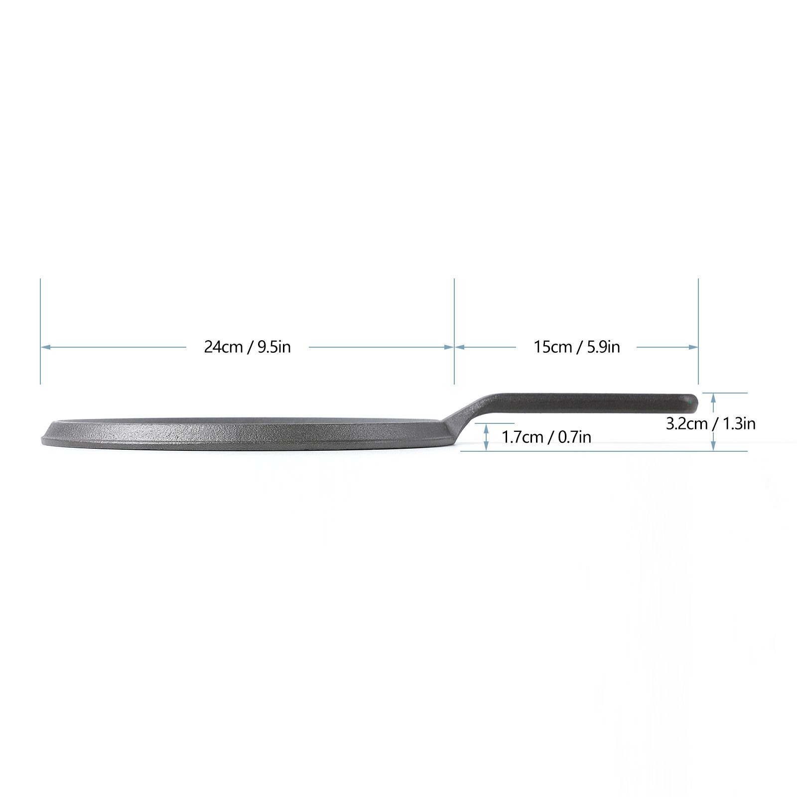 Cast Iron 9.5-inch Griddle is a multi-functional cookware that works wonders with all your favorite foods. This griddle is essential for big breakfasts, tortillas, quesadillas, roasted vegetables and grilled sandwiches.Cast iron loves a campfire, a stove top, or an oven, and can slow-cook foods without scorching. It retains heat well so you can sear meat at higher temperatures and will keep your delicious meals warm for a long time.