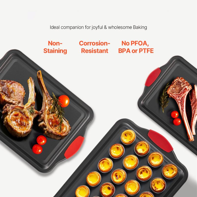 1.These baking pans are crafted from body-friendly and premium materials without harmful substances.